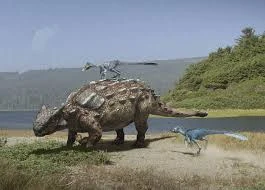 Ankylosaurus was a dinosaur that lived 69-65 million years ago. It measures about 27 feet long and had a rigid armor scattered by the head, back and tail (even the lids were stiff). To defend themselves if the armor was not enough, had a stiff ball of 70 kg at the tip of the tail that was able to break the leg of a predator like Tyrannosaurus rex. Its only weak point was the soft belly and it's unarmored legs.