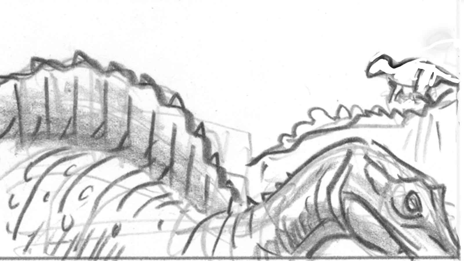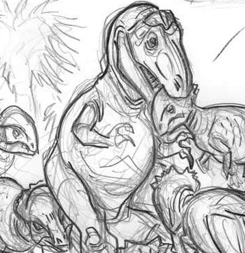 Edmontosaurus is a genus of hadrosaurid dinosaur that lived during the Late Cretaceous period in what is now North America. Edmontosaurus was originally supposed to appear in End Game during the Pectinodon segment as one of the many casualties of the K-Pg mass extinction, but it was ultimately cut from the final version of the episode. The original storyboard animatic of the Pectinodon segment featuring Edmontosaurus is included in the special features of Dinotasia. In the animatic, a baby Edmontosaurus is seen scampering through the remains of several adult Edmontosaurus before a bird suddenly swoops in and flies away with it in its talons. |