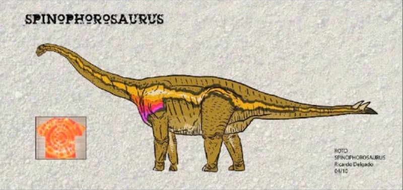 Spinophorosaurus is a genus of sauropod dinosaur that lived during the Middle Jurassic period in what is now Africa. Spinophorosaurus was originally supposed to appear in Dinosaur Revolution but was ultimately cut. However, its model and the segment it was supposed to appear in were later reused for Shunosaurus in Survival Tactics due to time constraints. |